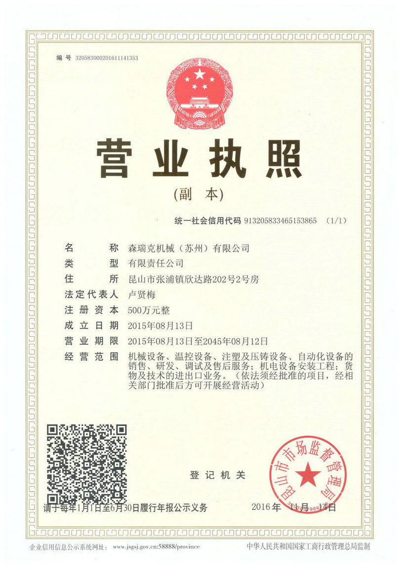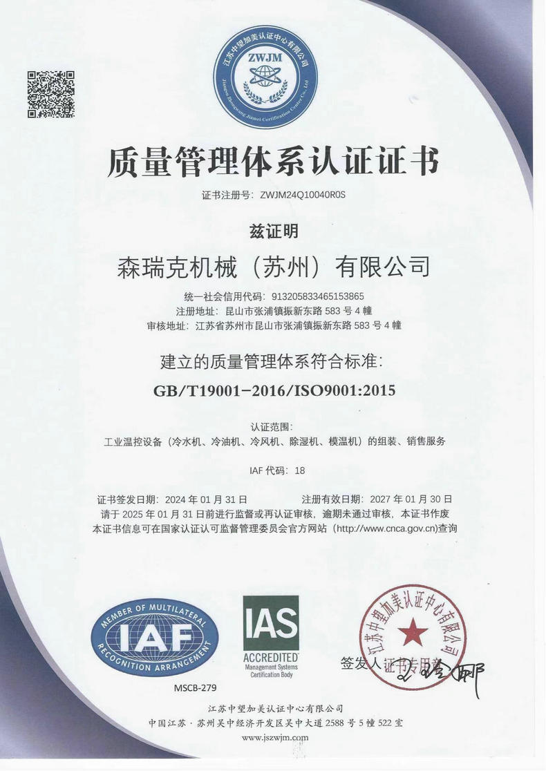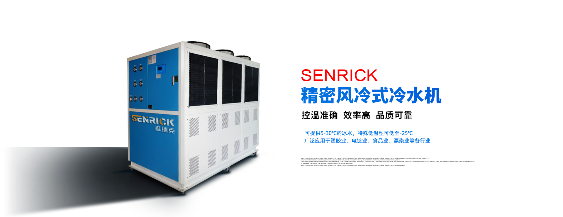 森瑞克機(jī)械(蘇州)有限公司(簡(jiǎn)稱:SENRICK)是一家中外合作性企業(yè),引進(jìn)技術(shù),專注于工業(yè)制冷設(shè)備,工業(yè)溫控設(shè)備,非標(biāo)制冷設(shè)備,集激光,化工,真空設(shè)備輔機(jī)等集研發(fā)、生產(chǎn)、銷售、服務(wù)于一體的的現(xiàn)代化科技企業(yè)。公司擁有完善的制造設(shè)備,先進(jìn)的檢測(cè)系統(tǒng),獨(dú)立的加工、生產(chǎn)工藝,一支開拓創(chuàng)新專業(yè)有素的技術(shù)人才團(tuán)隊(duì),以及全面的質(zhì)量控制體系,為產(chǎn)品質(zhì)量的不斷優(yōu)化提供了強(qiáng)大的保障,以確保滿足不同市場(chǎng)的各種需求。經(jīng)過多年的努力企業(yè)相繼研發(fā)生產(chǎn)出了工業(yè)冷水機(jī),工業(yè)冷風(fēng)機(jī),工業(yè)冷油機(jī),工業(yè)機(jī),低溫冷水機(jī),低溫冷風(fēng)機(jī),低溫冷油機(jī),螺桿式冷水機(jī)...